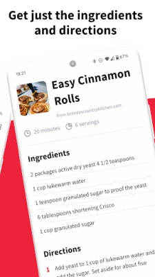 No more sifting through walls of text, photos, and ads. Share any recipe site from your web browser to Just the Recipe, and get straight to the cooking instructions.
