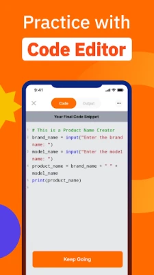 The CodeFobe Python learning app features a built-in code editor and code interpreter, allowing you to practice coding directly within the app. You can easily run your code on the CodeFobe app, making Python coding on mobile super simple.