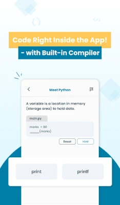 With our Learn Python app, you can start from zero and learn to code with an intuitive, interactive experience. Whether you’re a beginner or already familiar with python coding, our structured curriculum is designed to take your skills to the next level. Master the art of python programming, create real applications, and gain industry-ready skills in one of the world’s most in-demand programming languages.
